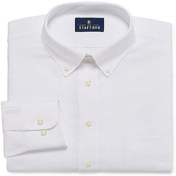 Stafford Regular Travel Oxford Mens Button Down Collar Long Sleeve Wrinkle Free Stretch Dress Shirt White 18 36 37 Walmart Com
